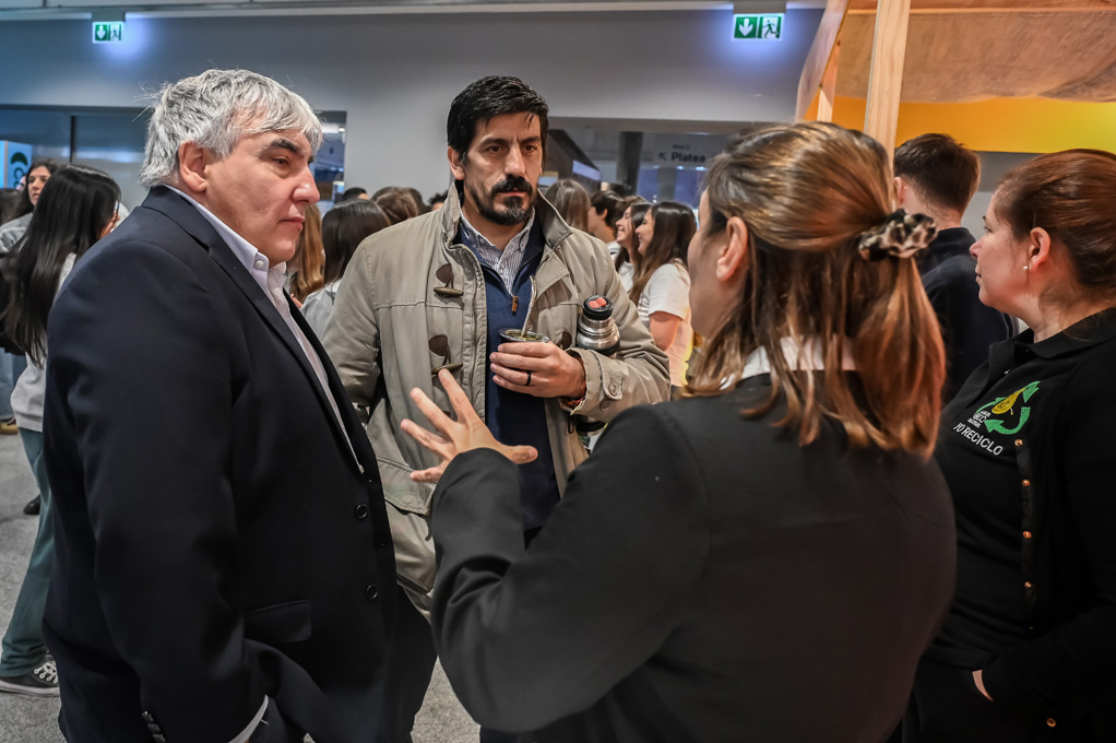El espacio de la feria que promueve el intercambio, el conocimiento y las buenas prácticas asociadas al cuidado del ambiente y el desarrollo sostenible, fue recorrido por el presidente y vicepresidente de Antel, Alejandro Paz y Pablo Álvarez.